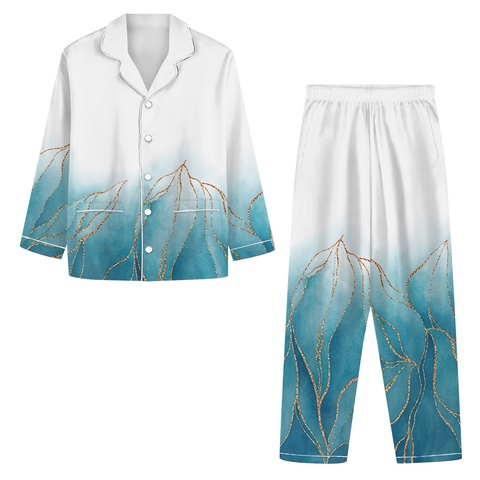 Pijama de manga larga con estampado personalizado, ropa de dormir de tela acogedora, traje de pijama con cárdigan, solapa, punto, de punto, para el 2017